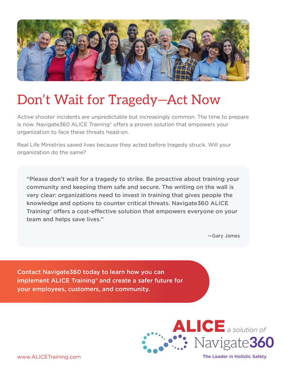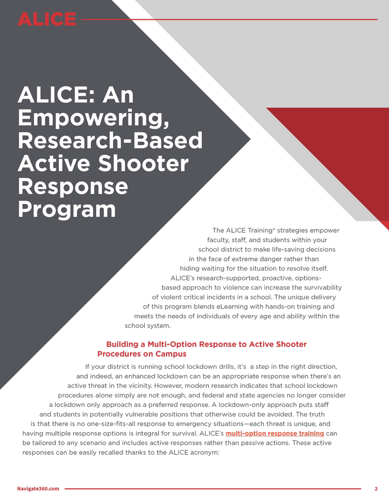 The refreshed logo addresses this gap by aligning ALICE more closely with Navigate360’s visual system. By simplifying the mark and integrating brand cues from the parent identity, the new design creates a stronger, more intuitive connection. The result is a cohesive brand experience that reinforces ALICE as part of the Navigate360 ecosystem