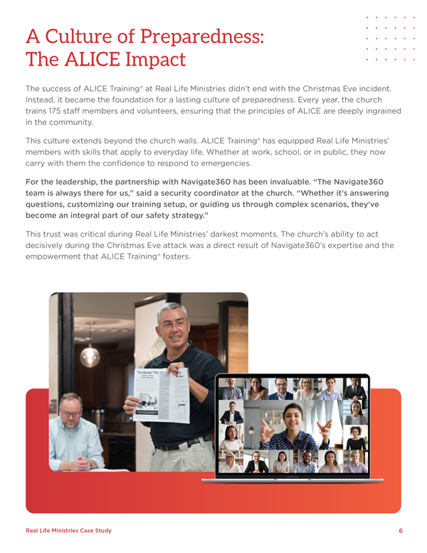 In high-visibility environments such as trade shows, ALICE red is used more prominently to capitalize on existing brand recognition. This strategic amplification helps attract familiar audiences and guide them toward the Navigate360 presence.